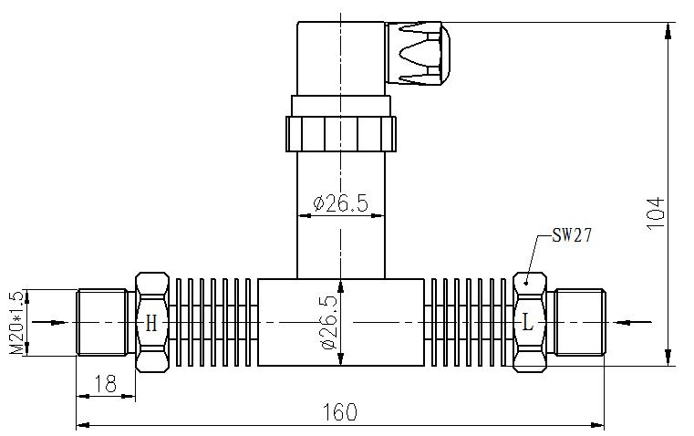差壓傳感器采用OEM硅壓阻式差壓充油芯體精制而成。外殼為全不銹鋼結構,具有較強的耐腐蝕性,兩個壓力接口為M20×1.5螺紋連接,可直接安裝在測量管道上或通過引壓管 連接。